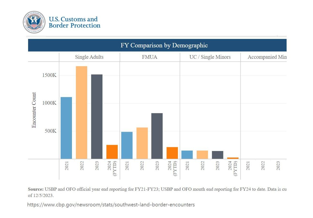 Even left-wing media outlets report that more than 300,000 people crossed the US border just in the month of December 2023, which was the highest number ever. And more than two-thirds (69%) of those who crossed were single adults.